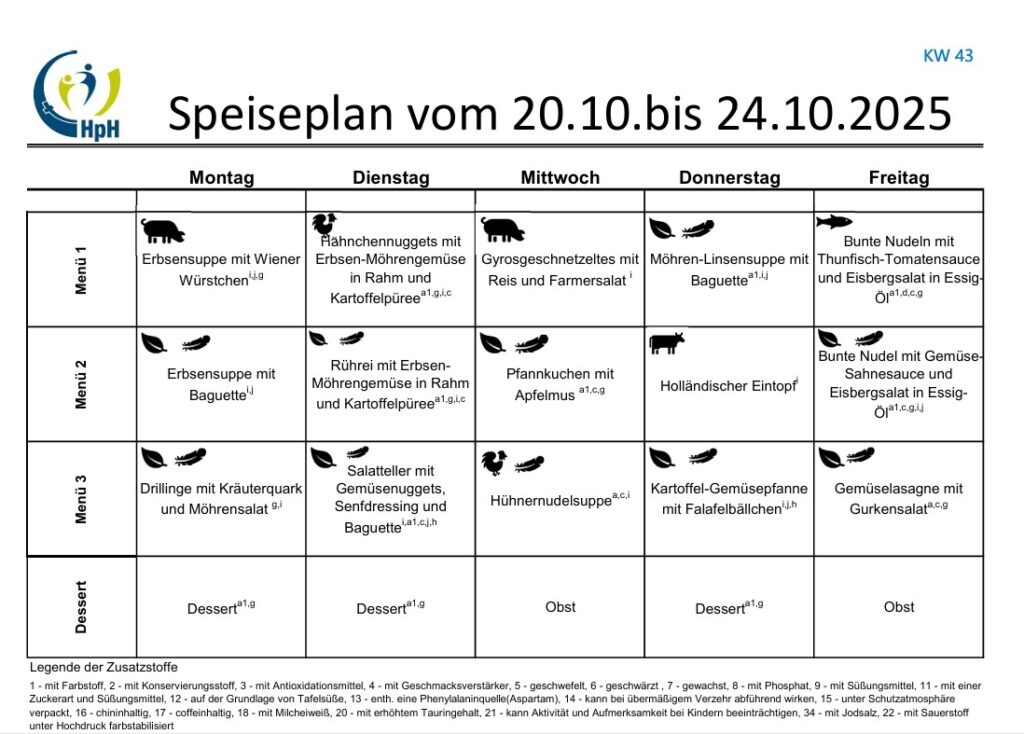 Das Mittagessen wird von der Heilpädagogischen Hilfe Bersenbrück geliefert und findet direkt neben der Schule in der DGA (Dorfgemeinschaftsanlage) statt.